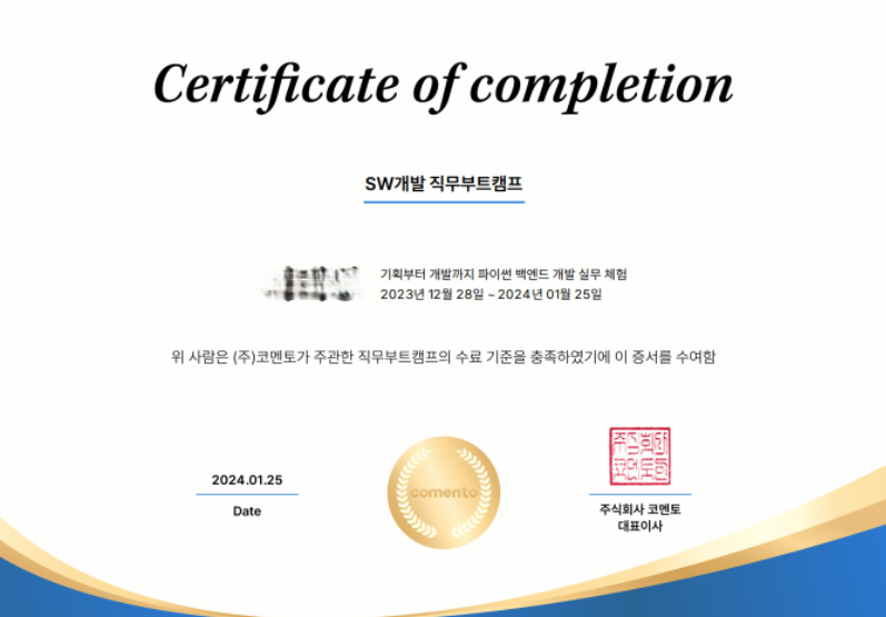 [SW개발 직무부트캠프] 기획부터 개발까지 파이썬 백엔드 개발 실무 후기